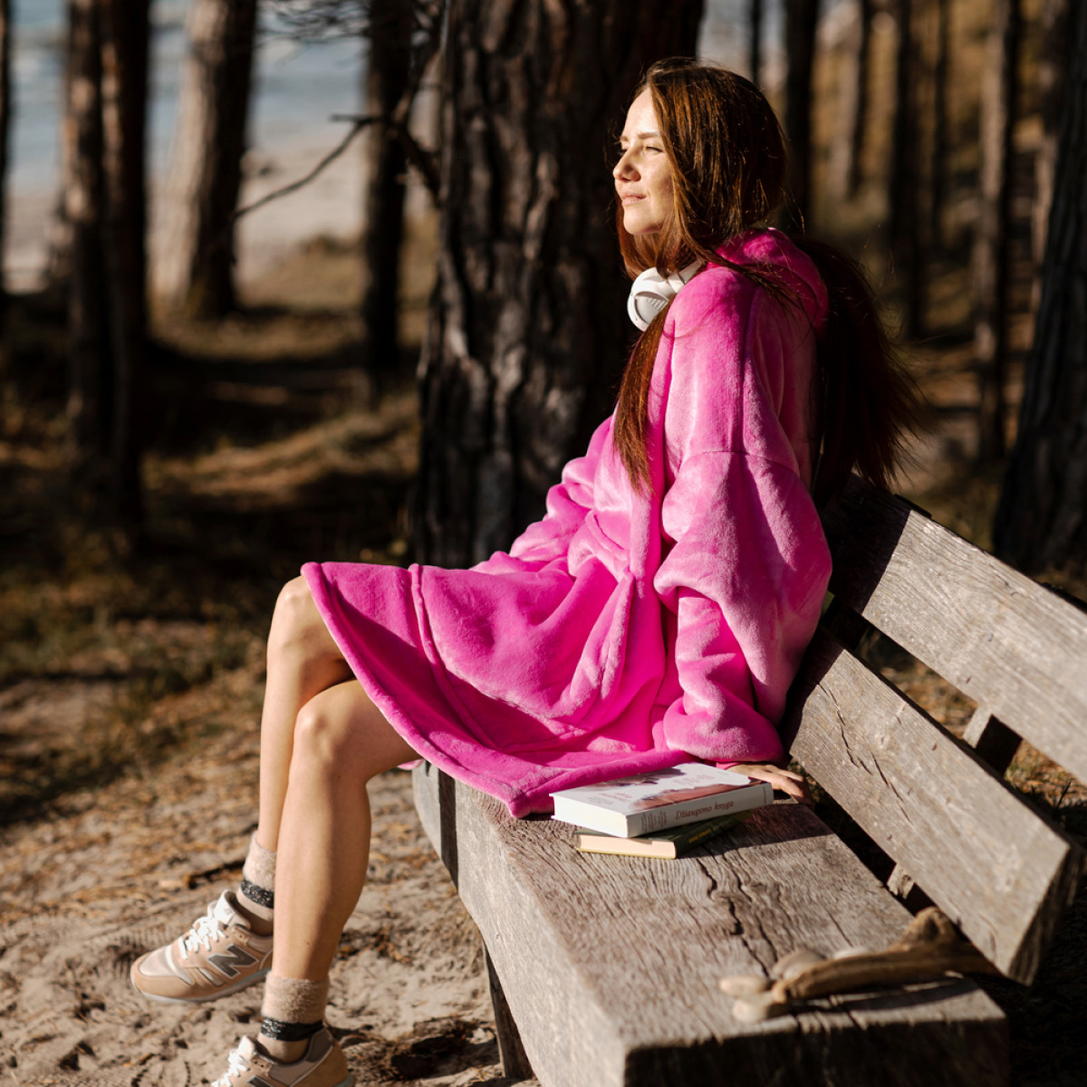 - Daugiafunkciškumas. Šis šiltas drabužis atstos tiek džemperį, tiek pledą.