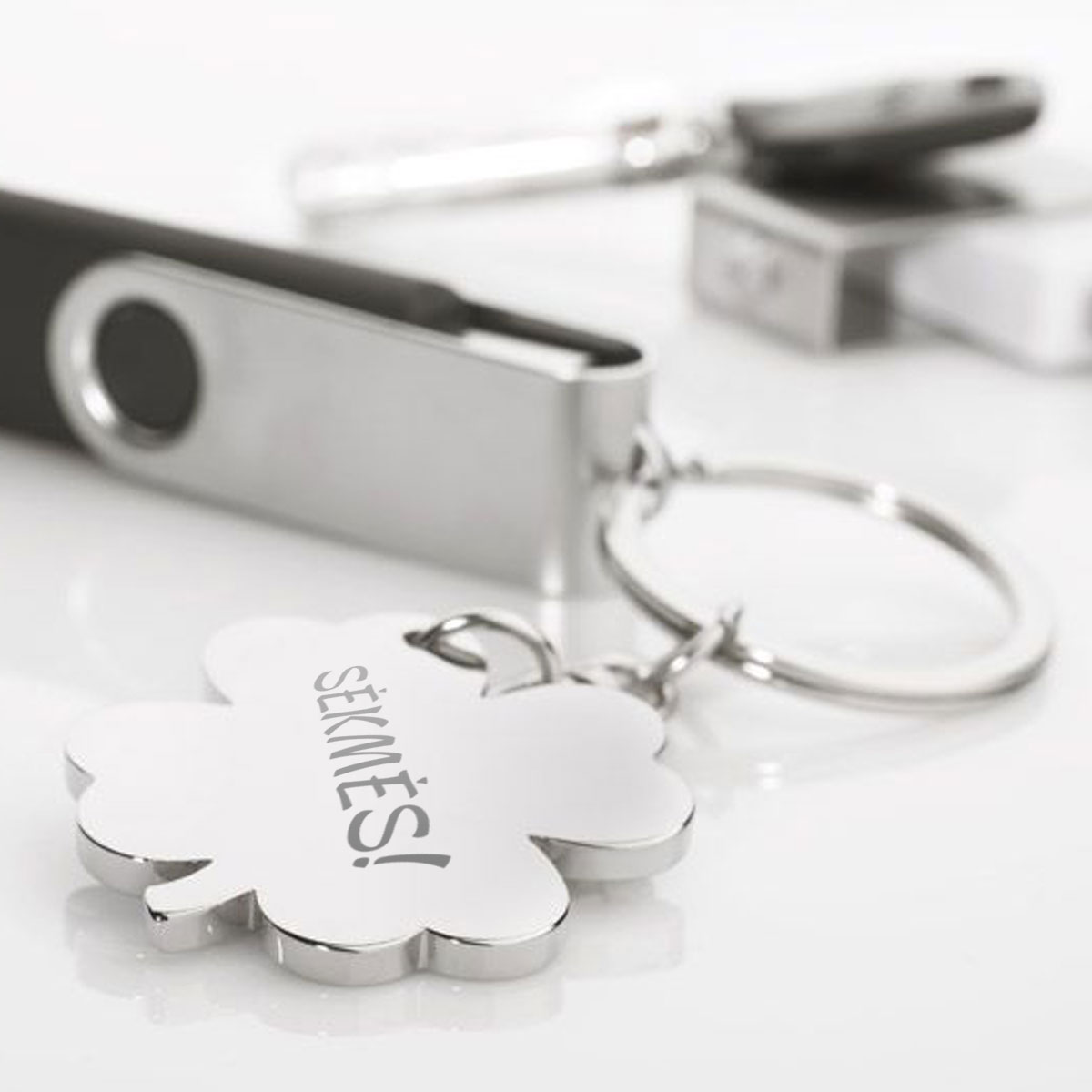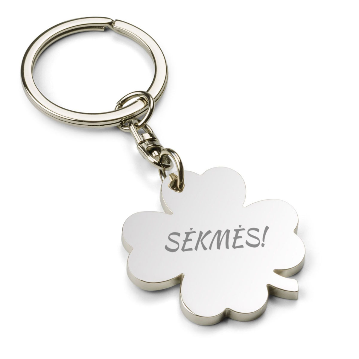 Metalinis raktų pakabukas su išgraviruotu užrašu "SĖKMĖS!".