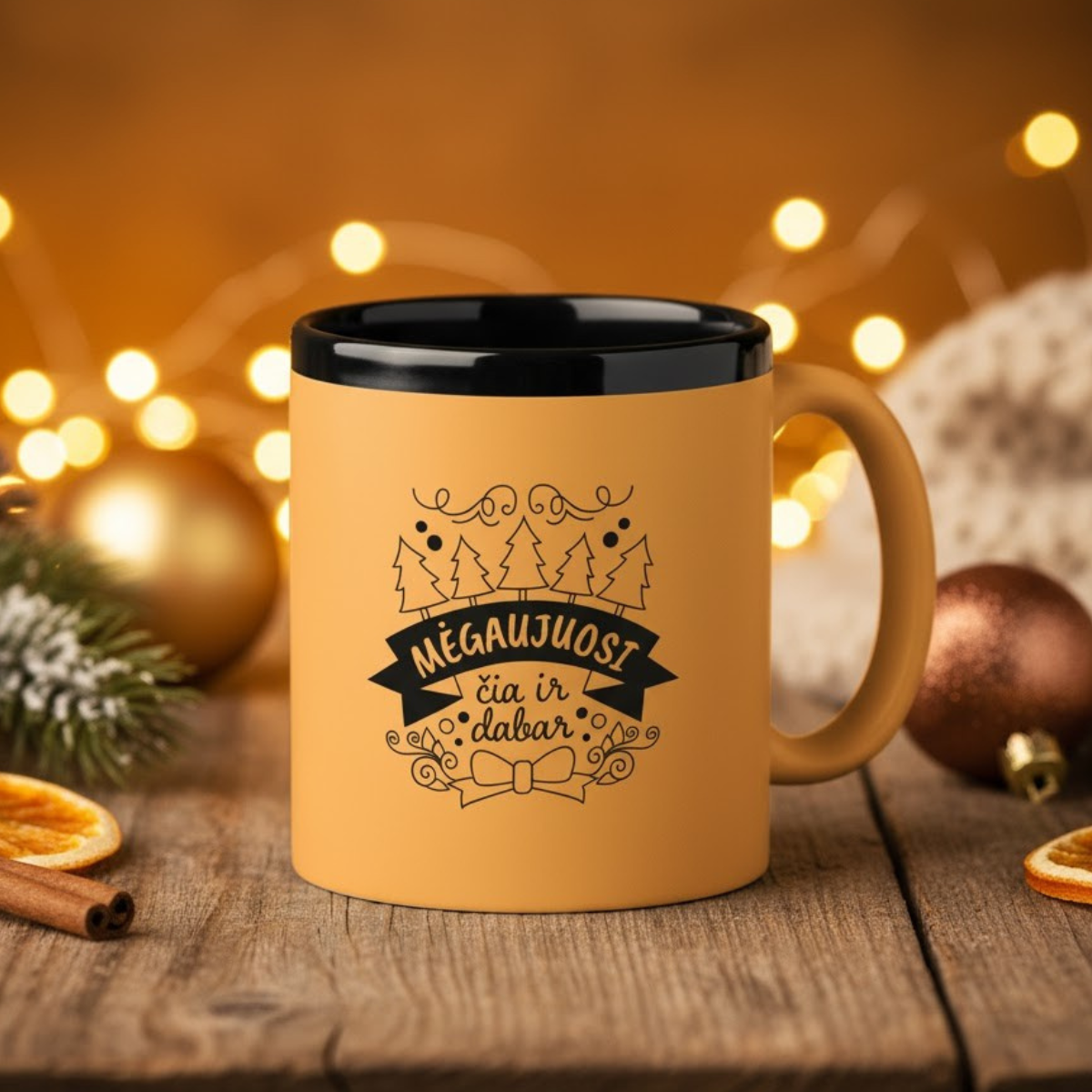 Graviruotas puodelis "Mėgaujuosi čia ir dabar"
