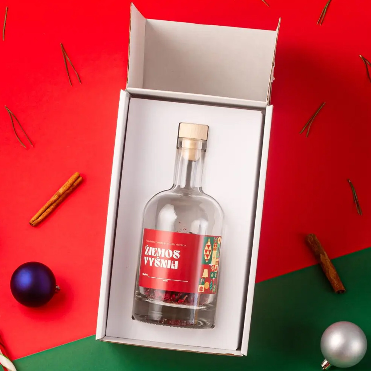 Premium klasės dovana, kurią sudaro 1 buteliukas su visais reikalingais ingredientais, leidžiantis mėgautis savo pagaminta Kalėdine trauktine namuose.