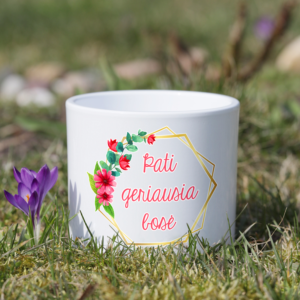 Itin žavus, keraminis, apvalus vazonas su užrašu - "Pati geriausia bosė".