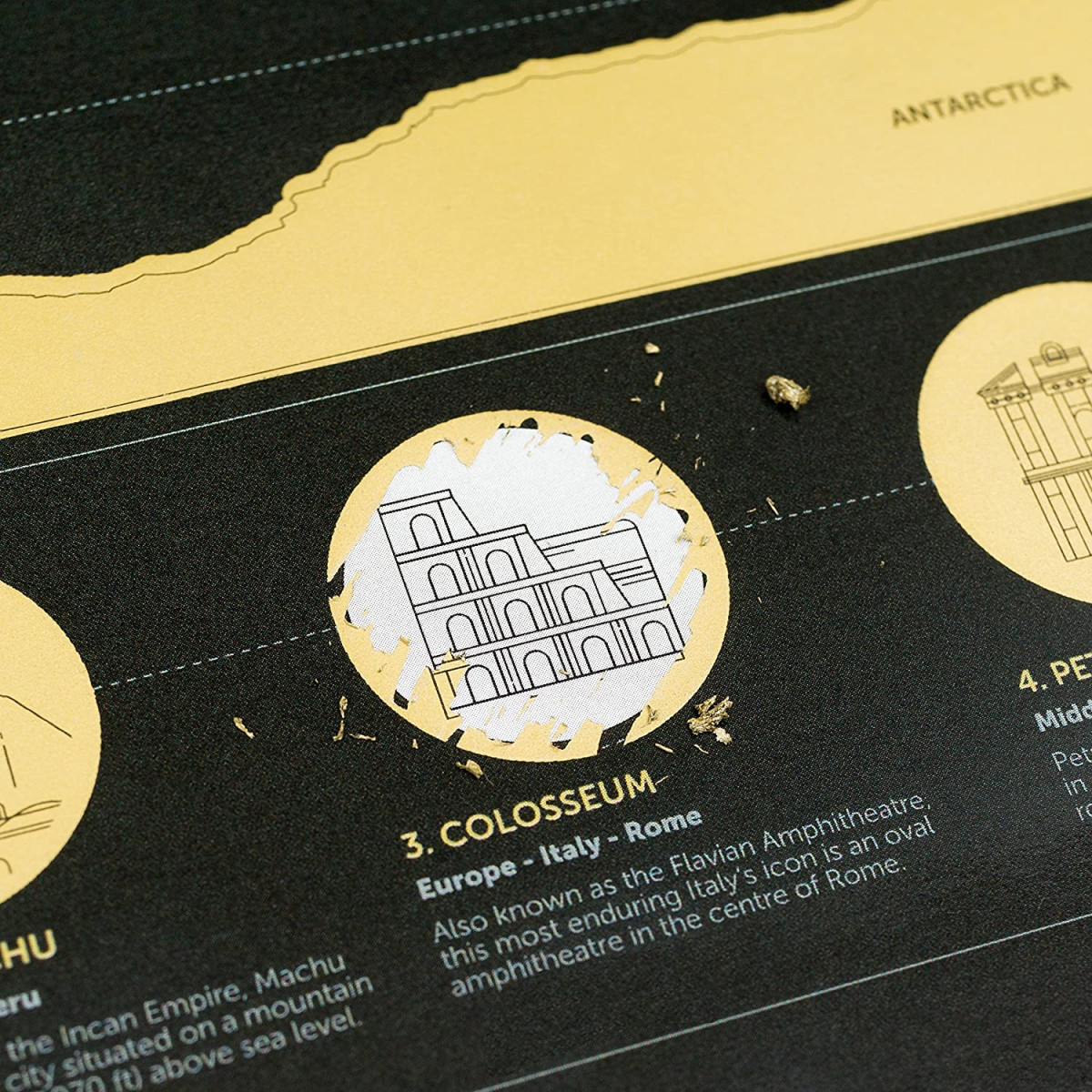 IŠSKIRTINIS DIZAINAS – Nutrinamas žemėlapis yra ne tik unikalus produktas, kuris įtraukia ir džiugina - jo stilingas dizainas tinka kiekvieniems namams ar biurui. Juodos ir auksinės spalvos derinys puikiai tiks bet kokiame interjere. Neabejojame, jog žemėlapis šauniai atrodys ir vaikų kambaryje!