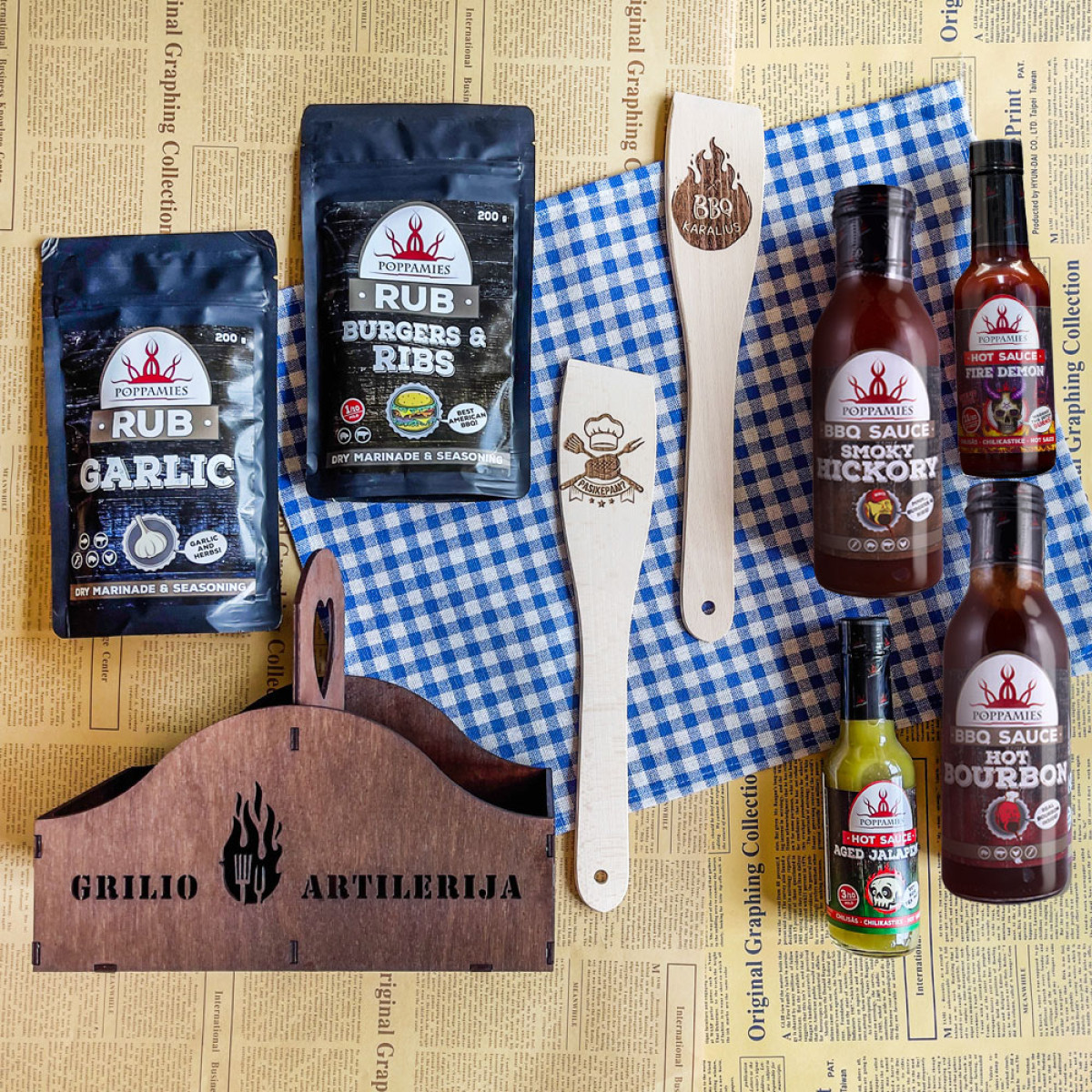 Dovanų rinkinys tikram BBQ fanui! Rinkinį sudaro įvairūs prieskoniai bei marinatai, kurie Jūsų patiekalams suteiks ypatingo skonio!