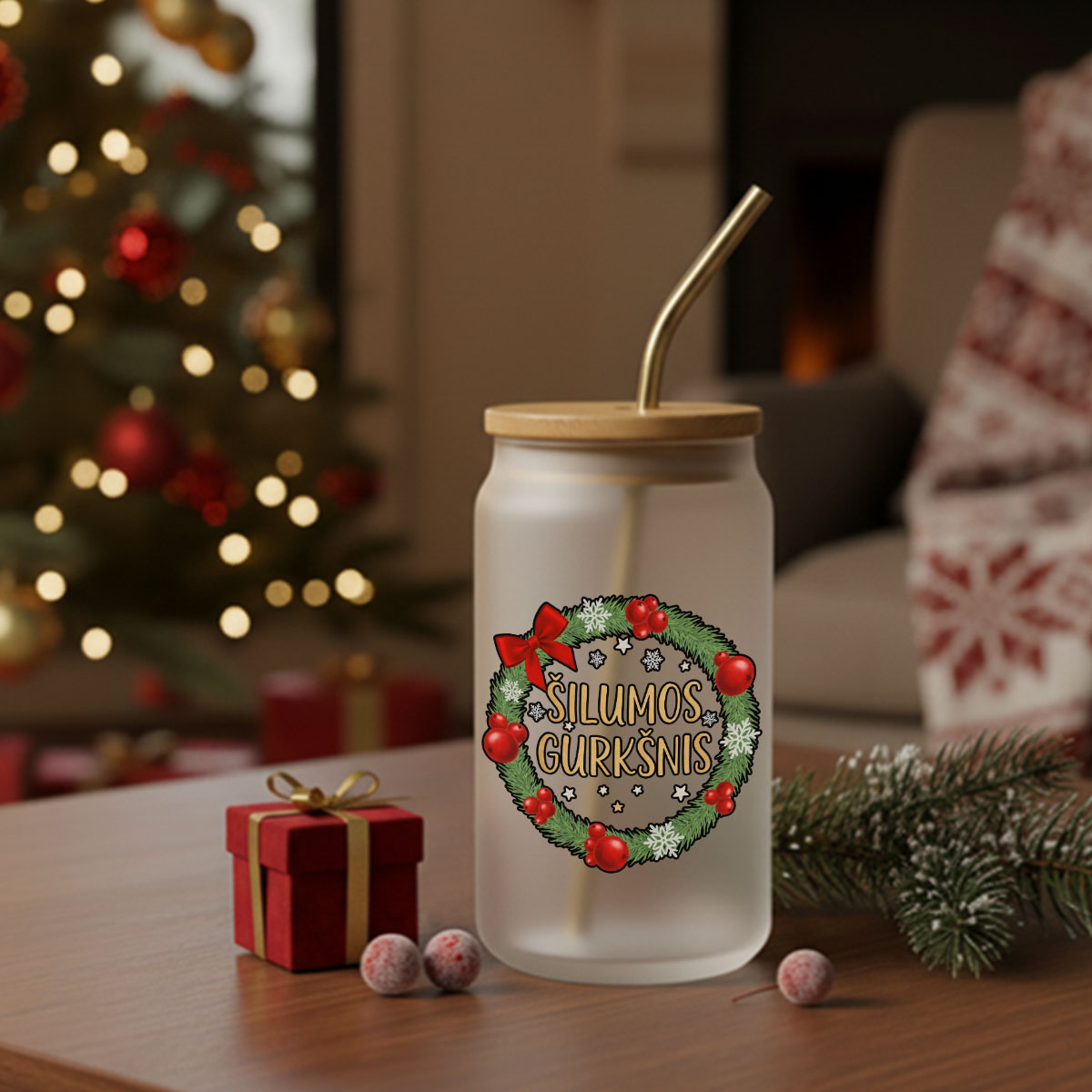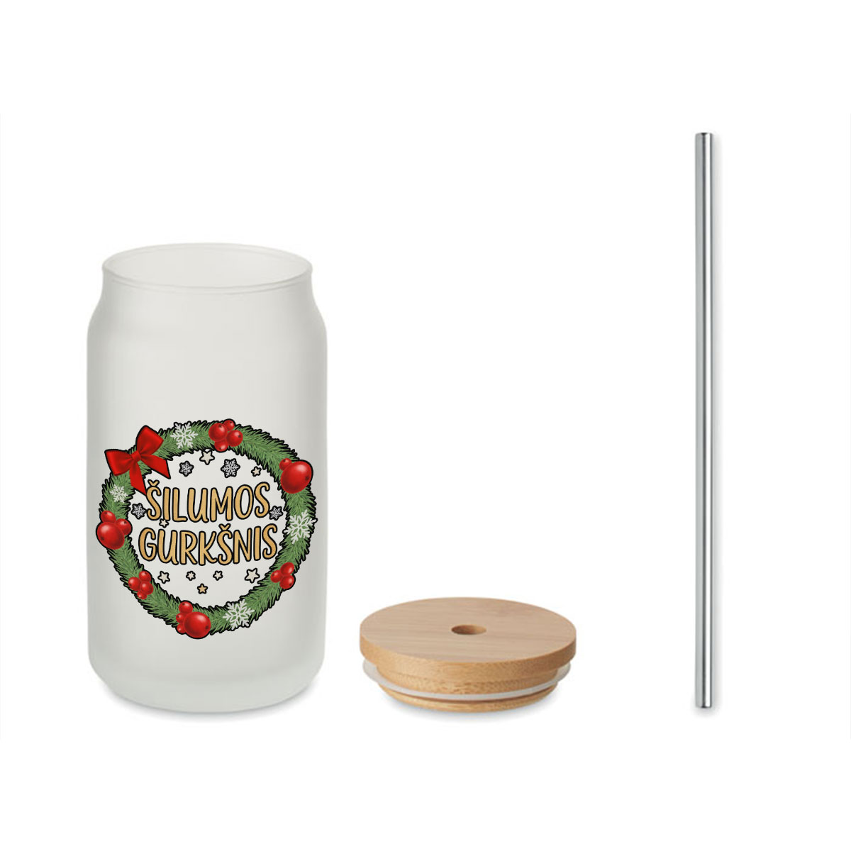 Stiklainis gėrimams su metaliniu šiaudeliu "Šilumos gurkšnis", 400 ml – jaukus pasirinkimas šventėms ir kasdienai!