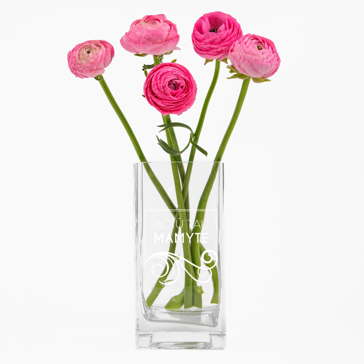 Stiklinė stačiakampė vaza "Ačiū tau, mamyte"