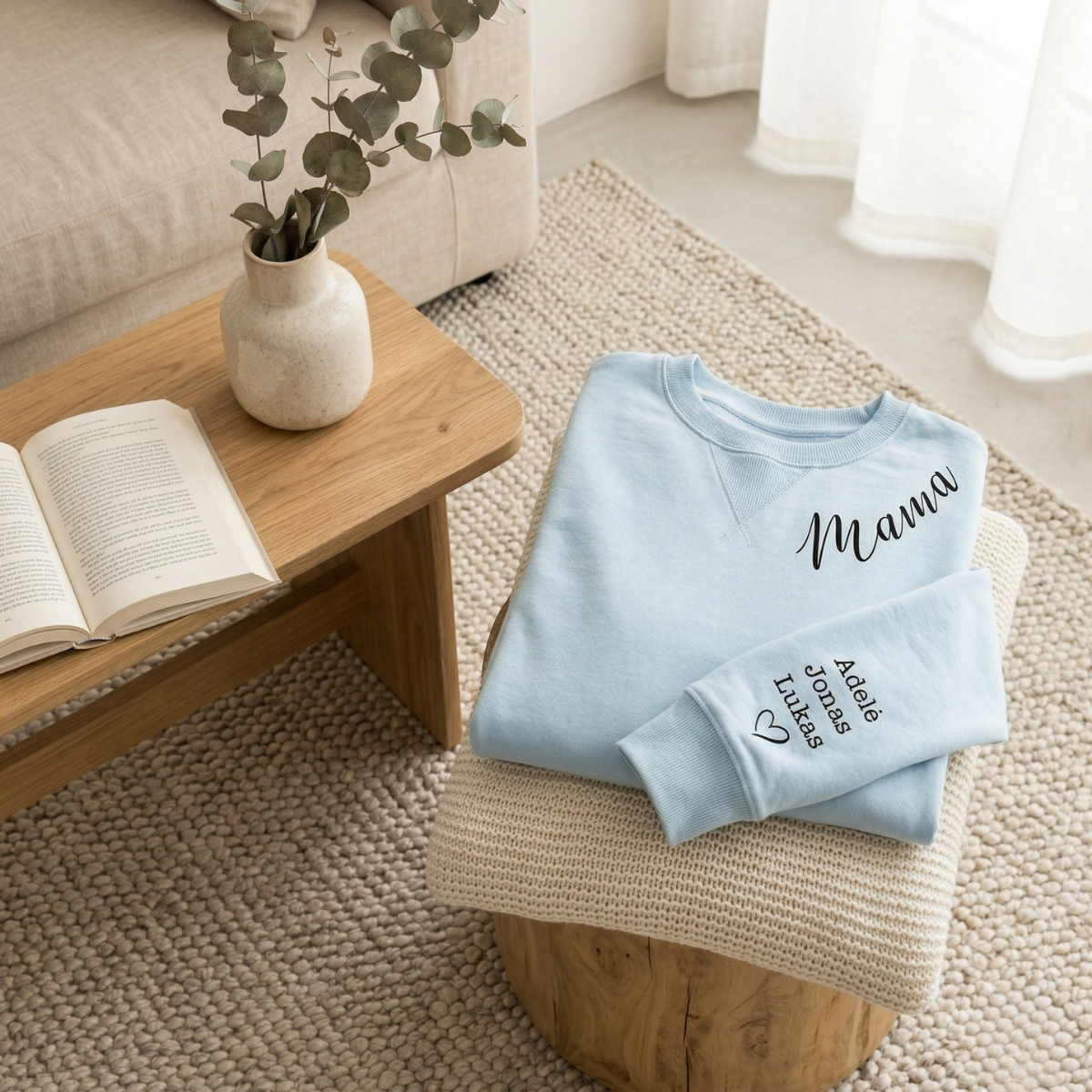 UNISEX pastelinis "Sully" džemperis "Mama" su vaikų vardais ant rankovės