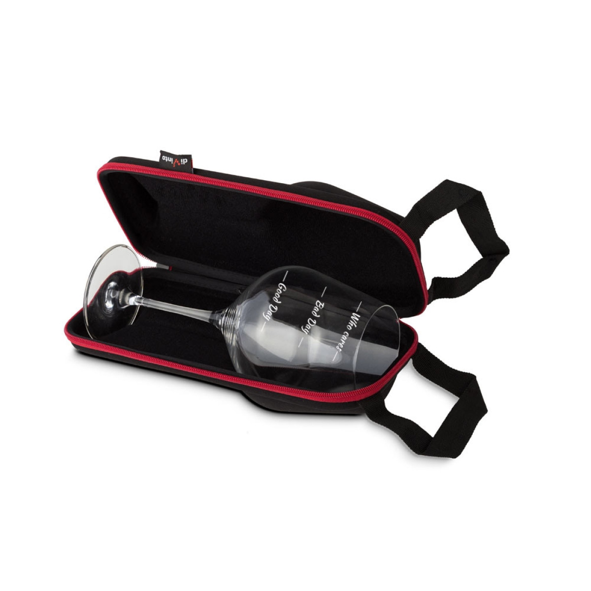 Vyno taurė supakuota į specialiai jai pritaikytą, tvirtą ir stilingą krepšį, kurį galite patogiai pasiimti su savimi į vakarėlį, išvyką ar tiesiog pas draugus.